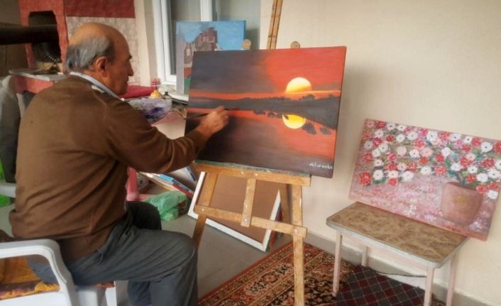 Tokat’ta emekli mobilyacı, evinin teras katında yaptığı yağlı boya tablolarla ressamlara adeta taş çıkartıyor.