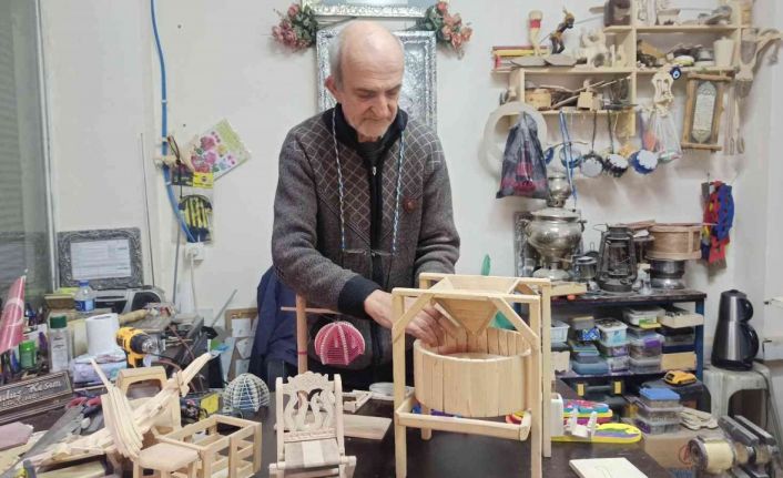 Kahramanmaraş’ta emekli öğretmen Kurtuluş Kesim, 25 yıldır çocuklara ahşaptan araba, gemi, kamyon gibi sağlıklı oyuncaklar yapıyor.