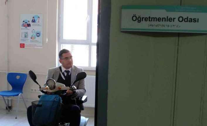 Doğuştan kas hastalığı nedeniyle yaşamını tekerlekli sandalyeye bağlı sürdüren öğretmen Gökhan Özcan, çocukluktan bu yana hayalini kurduğu mesleğini gururla yapıyor.