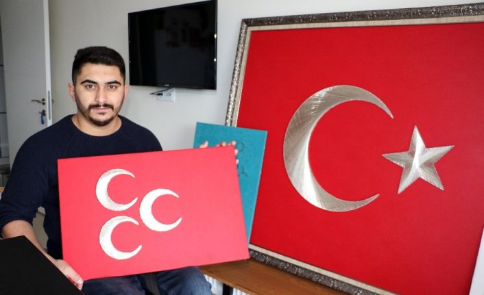 Kars’ta uzman çavuşken 2016 yılında teröristlerle girdiği çatışmada boynundan yaralanan Yozgatlı gazi Muammer Ceylan, hobi amaçlı başladığı filografi sanatıyla acılarını unutuyor.