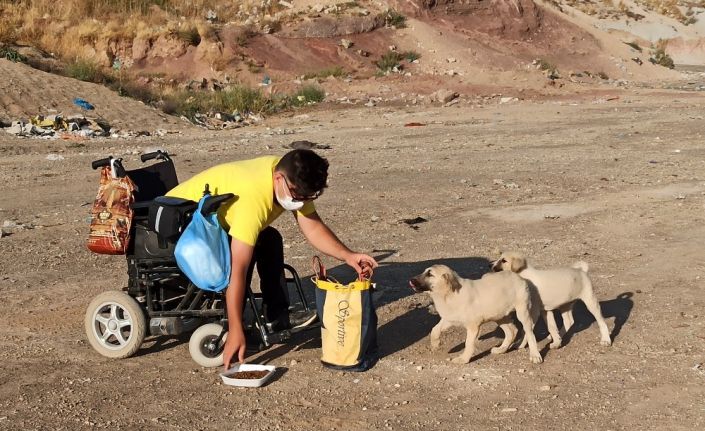 Bitlis’in Ahlat ilçesinde yaşayan 21 yaşındaki bedensel engelli Uğur Avcı, akülü tekerlekli sandalyesiyle cadde ve sokakları dolaşarak sokak hayvanlarını besliyor.