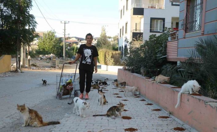 Enkaz kentin sokaklarında el arabasıyla günlük 15 kilogram yem dağıttığını dile getiren Günaydın, “En az 150-200 kedi besliyorum. En az burada 40 tane var ve böyle 5-6 noktamız var. Bahçemizdeki kedilerle 200’den fazla belki de. Günde 2 torba mama gidiyor, 15 kiloluk. Gerçekten bu yaptığım zorluyor çünkü her gün aynı acıları görüyoruz. Hep enkaz ve yıkık yerler görüyoruz. Bir taraftan da bunların karnını doyuruyoruz mutlu oluyoruz. Geçiyor günümüz. Çevremizdeki insanlar takdir ediyorlar, helal olsun, bıkmıyor musun, yorulmuyor musun diyorlar. Ayda 10 bin TL’miz kediler için gidiyor hatta tek kedi değil köpek de oluyor” ifadelerini kullandı.