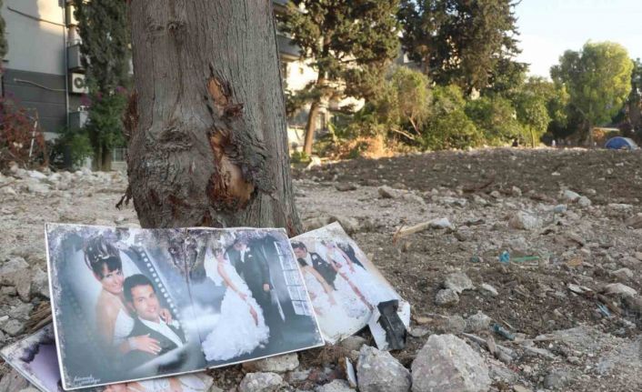 Kahramanmaraş merkezli depremlerde en büyük hasar Hatay’da meydana gelmişti. Defne ilçesinde de binlerce konut depremden zarar gördü. Lazkiye Caddesi’nde bulunan ağır hasarlı bir binanın kaldırılan enkazından geriye bir çiftin düğün fotoğrafları kaldı. Vatandaşlar tarafından zarar görmemeleri için ağacın yanına bırakılan fotoğraflar, yarım kalan hayatların hüzünlü göstergesi oldu. Fotoğrafı gören vatandaşlarsa duygulandı.