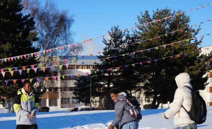 Erzurum’da öğrenim hayatlarına devam eden ve hayatlarında ilk kez kar yağışını gören Afrikalı öğrenciler hayretlerini gizleyemediler.