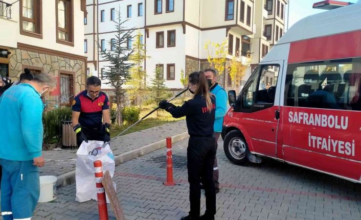 Kirkille Toki mahallesi’nde bir apartmanın zemin katındaki evlerine giren yılanı kendi imkanlarıyla çıkaramayan vatandaşlar durumu itfaiye ekiplerine bildirdi. İhbar üzerine adrese gelen ekipler, yılanı çıkarmak için çalışma başlattı. Safranbolu Belediyesinin kadın itfaiye eri yılanı yakalayarak doğaya bıraktı.