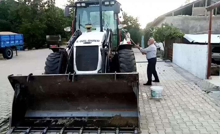 Evinin önüne park edilen kepçeyi yıkadı, vali teşekkür etti