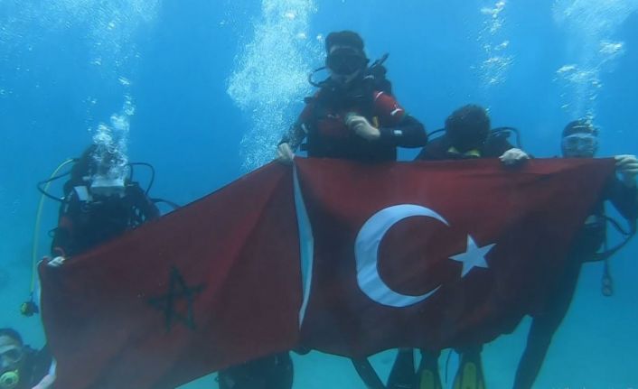 AÜ Su Ürünleri Fakültesi Su Ürünleri Mühendisliği Bölümü 3. Sınıf öğrencisi Mehdi Bili de farklı bir kutlama etkinliğine imza attı. Su Altı Topluluğu’yla birlikte Kemer’de eğitim dalışı yapan öğrencilerden Bili, ülkesinin bayrağını yaklaşık 25 metre derinlikte açarak kutlama yaptı. Türk ve Fas bayrağını su altında sallayan öğrenciler büyük bir mutluluk yaşadı. Hızını alamayan Bili, bir süre solunum maskesini çıkarıp ülkesinin bayrağını uzun süre su altında taşıdı.