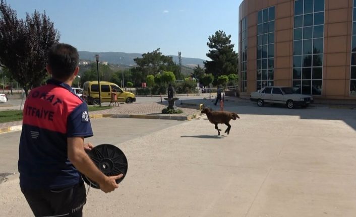 Tokat Belediyesi itfaiyesi önünde sahipsiz olarak dolaşan koçu ekipler fark etti. Kurbanlık koçu yakalamak isteyen itfaiye erleri, kaçan hayvanı takip etmeye başladı. İtfaiye binası karşısındaki Tokat Devlet Hastanesi bahçesine giren koç, hareketli anların yaşanmasına neden oldu. Poliklinik binası girişinde sıkıştırılan koç, kendisini yakalamak isteyen itfaiye erleri ve basın mensuplarının arasından kaçmayı başardı. Bir süre devam eden kovalamacada hastane bahçesinde sıkıştırılan koç, ikinci denemede de yakalanamadı. Hızla koşarak bölgeden uzaklaşarak yola çıkan kurbanlık hayvan gözden kayboldu.