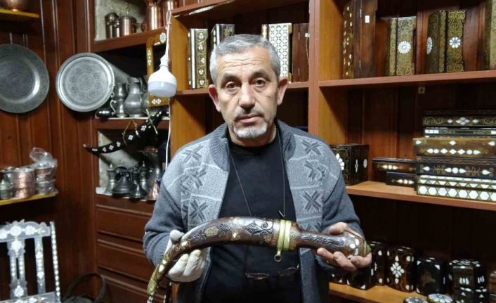 Gaziantep’te 45 yıldır Osmanlı saraylarını süsleyen sedef kakma sanatıyla uğraşan Ökkeş Bozkurt, antika silah, kılıç ve hançerlere sedef işlemesi yapıyor.