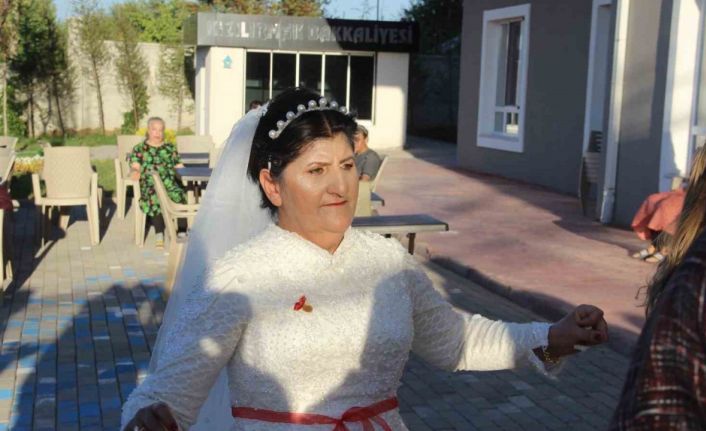 Çifti bakım merkezi çalışanları ve arkadaşları mutlu gününde yalnız bırakmadı. Nikah töreninin ardından bakım merkezinde kalan yaşlılar doyasıya eğlendi.