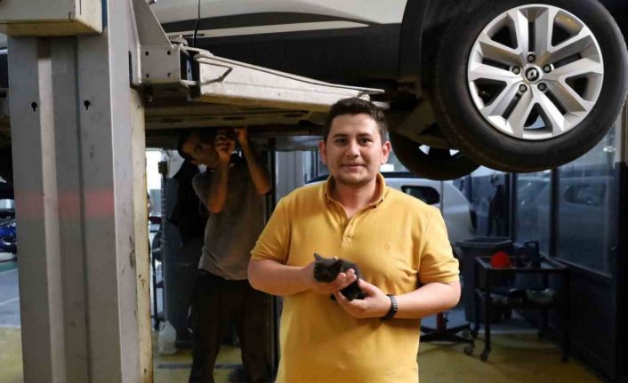 Genç öğretmen otomobiline sıkışan yavru kediyi sahiplendi