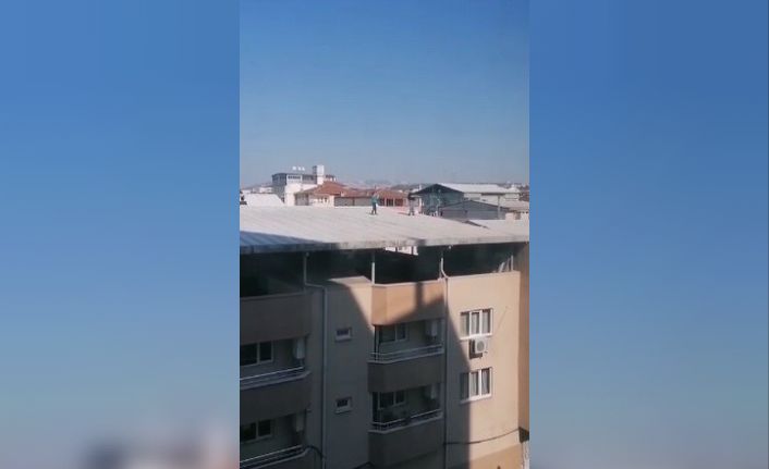 Bursa’da 2 gencin bir evin çatısına çıkıp tehlikeye aldırış etmeden tik tok için video çekmeye çalışmaları yürekleri ağza getirdi.