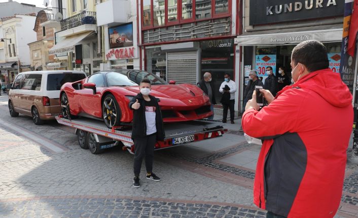 Edirne’de, Kenan Sofuoğlu’na ait olduğu iddia edilen ve çekici üzerinde taşınan Ferrari marka kırmızı lüks otomobili gören Edirneliler, cep telefonlarına sarıldı. Kimi oğlunu, kimisi arkadaşını çekti, kimisi de öz çekim yaparak, lüks otomobil ile hatıra fotoğrafı çektirmek için adeta birbirleriyle yarıştı.