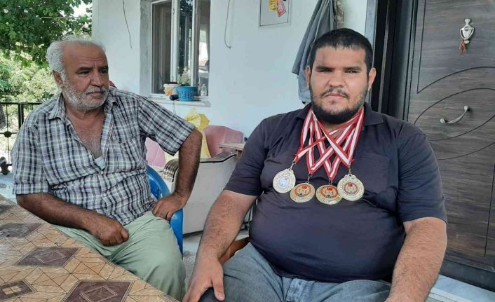 Osmaniye’nin Bahçe köyünde yaşayan doğuştan görme engelli 22 yaşındaki Nuri Poyraz, köyde, ailesine yardım için köy işlerinde ağırlık kaldırarak hazırlandığı halter turnuvasında Türkiye şampiyonu oldu.