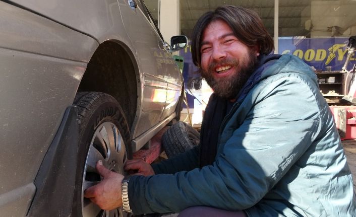 Yolda kalan bir müşterisinin lastiğini değiştirmek için kalfasını gönderen Ali Tutar, pos cihazı yolladığı halde müşterisinin sırf gülmek için ödemeyi yapmak için bizzat yanına geldiğini söyledi.