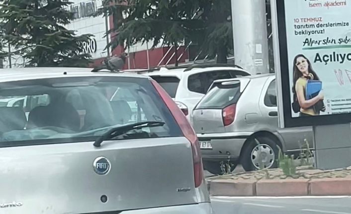 Kayseri’de yorulan güvercin, otomobilin tavanına kondu. Etrafı izleyerek şehir turu atan güvercini gören vatandaşlar da, o anları telefonları ile kaydetti. Yolculuğunu bir süre devam ettiren güvercin, daha sonra uçtu. Vatandaşlar da sosyal medyada "Kayserili güvecin" yorumunu yaptı.