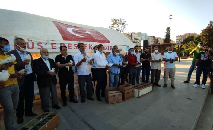 Şanlıurfa’da, Filistin’de şehit olan Müslümanlar için, sivil toplum kuruluşları öncülüğünde düzenlenen etkinlikle yüzlerce güvercin gökyüzüne salıverildi.