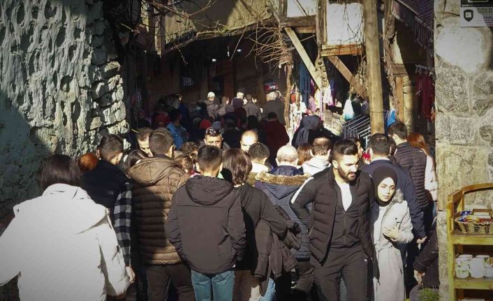 Uludağ’ın eteklerinde yer alan 700 yıllık tarihi köyde nüfus hafta sonunun güneşli geçmesiyle 70 kat arttı. Ziyaretçiler köyün sokaklarında yürümekte zorluk çekti.