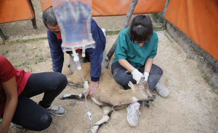 Antalya’nın Akseki ilçesinde elverişsiz hava şartlarından etkilenerek halsiz düşen yaban keçisi, Antalya Büyükşehir Belediyesi’ne bağlı ASAT Atıksu Arıtma Tesisi’ne sığındı. Doğa Koruma ve Milli Parklar Genel Müdürlüğü’ne teslim edilen keçi, Antalya Hayvanat Bahçesi’nde tedavi ediliyor.