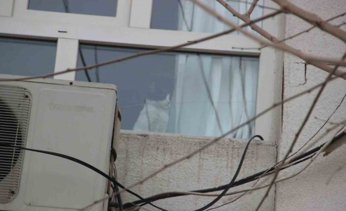 Kahramanmaraş merkezli iki ayrı depremde Adıyaman’da bazı binalar tamamen yıkılırken, bazıları ise ağır hasar gördü. İnsanların terk etmek zorunda kaldıkları evlerin birinde mahsur kalan kedi, vatandaşların dikkatinden kaçmadı. Adıyaman merkez Haydar Efendi Caddesi üzerinde alttaki dükkanlar ile bir katı tamamen çöktüğü için kapıdan girilemeyen ve yan duran binada mahsur kalan kediyi gören vatandaşlar, itfaiye ekiplerine haber verdi. Olay yerine giden Adıyaman Belediyesi İtfaiye Müdürlüğü ekipleri, araç merdiveni yardımıyla kedinin mahsur kaldığı dairenin penceresine ulaştı. Pencereyi kırıp evin içini kontrol eden görevli, kedinin kendi imkanlarıyla çıktığını belirledi.