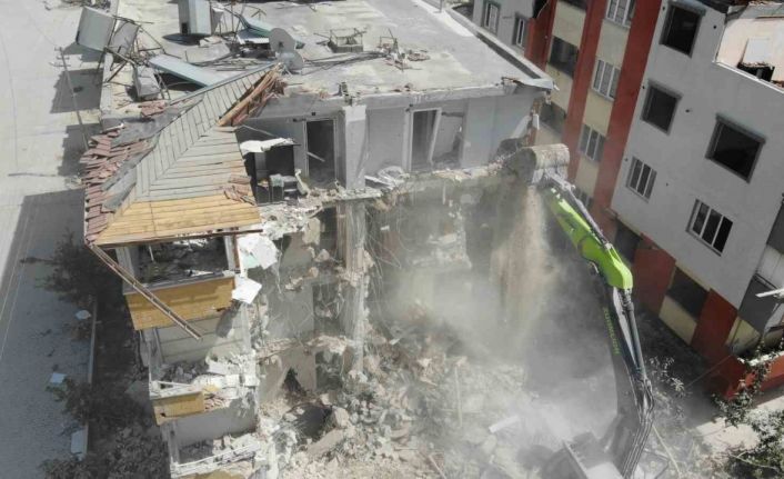 6 Şubat’taki Kahramanmaraş merkezli depremlerin en büyük yıkımı yaptığı Hatay’da yıkılan binaların enkazının kaldırılmasının ardından ağır hasarlı binalardaki çalışmalar devam ediyor. İl genelinde 60 bölgede ağır hasarlı olan binaların yıkım ve enkaz kaldırma çalışmaları sürüyor. İş makineleriyle yıkılan binaların enkazları, demirleri ayrıldıktan sonra kamyonlarla döküm sahasına götürüldü. Demirler ise tırlarla bölgeden taşındı. Bazı depremzedeler evlerinin yıkımını üzüntülü gözlerle takip etti. Çalışmalar dron ile de görüntülendi.