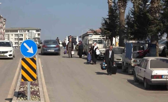 Hataylılar yerle bir olan şehirden otobüslerle terk ediyor