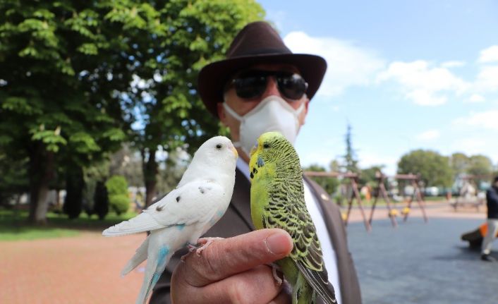 Samsun’un İlkadım ilçesindeki evinde 30 senedir muhabbet kuşu besleyen İsmet Akça, parmağına kondurduğu 1 yaşındaki Süslü ve 3 buçuk yaşındaki Beyaz isimlerindeki muhabbet kuşları ile her yere gidiyor. Kuşları ile toplu taşıma araçlarına binen ve günlük işlerindeki her anını kuşları ile geçiren İsmet Akça’yı görenler şaşkınlıklarını gizleyemiyor.
