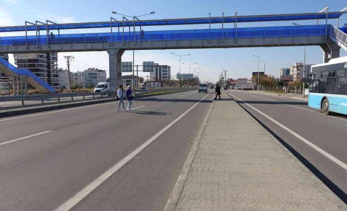 Polis ekipleri, üniversite öğrencilerinden üst geçidi kullanmalarını ve yoldan geçmemelerini istedi.