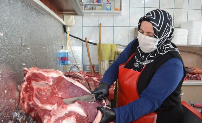 Tokat’ın Reşadiye ilçesinin tek kadın kasabı erkek meslektaşlarına taş çıkartıyor.