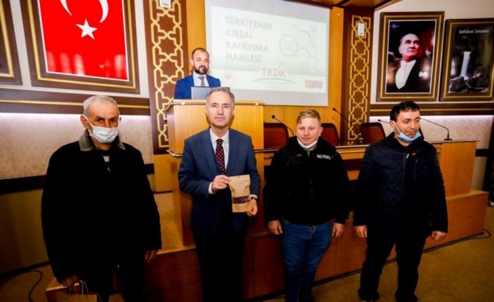 İnegöl’de ilk ekinezya ekimini yapan çiftçiler, mahsulü işleyip ilk hasattan elde ettikleri çayı Belediye Başkanı Alper Taban’a hediye ettiler.