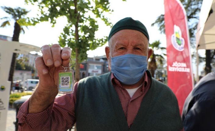 İnegöl Belediyesi, cep telefonu kullanımında ve HES Kodu konusunda zorluk yaşayan 65 yaş üzeri vatandaşlar için üzerinde isim, soyisim, HES kodu ve karekod bulunan anahtarlık dağıtıyor.