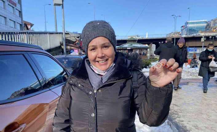 Zonguldak’ta yaşayan 3 çocuk annesi Sevim Saraçlı, bir çiftin karın içerisine düşürdüğü alyansı bularak zabıta ekiplerine teslim etti. Daha önce de benzer bir durum yaşadığını ifade eden Saraçlı, "Daha önce de çanta bulmuştum. Sahibine ulaşıp sağ salim teslim ettik. O da öğrenci çıktı, çok sevindi" dedi.