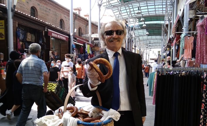 İşini aşkla yapan grand tuvaletli simitçi, gören herkesin takdirini kazanıyor. Bu işi severek yaptığını ifade eden 62 yaşındaki Ahmet Berksun, hijyene de önem vererek, simitleri eldivensiz tutmuyor. Şık simitçi, "Ben Bursa’da isim yapmış bir simitçiyim. Pandemiden önce öğlene kadar 500 simit satıyordum. Şimdi yarım günde 200 simit satıyorum. Bir simidi 2,5 liraya satıyorum. İşler iyi olunca 400-500 lira kazanıyorum. Simitleri takım elbise ve kravatla satıyorum. Bursa’da vatandaşlar beni çok sevdi. Sıcak havada takım elbiseyle simit satmak çok terletse de şıklığımdan taviz vermiyorum. Beni Bursa’da tanımayan esnaf yoktur. Beni ismimle kimse bilmiyor, herkes beni kravatlı simitçi olarak biliyor" dedi.
