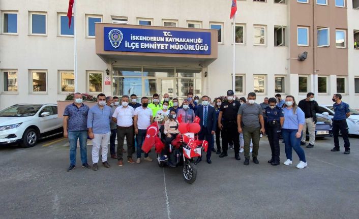 İskenderun polisi, engelli öğrenciye elektrikli bisiklet hediye etti.