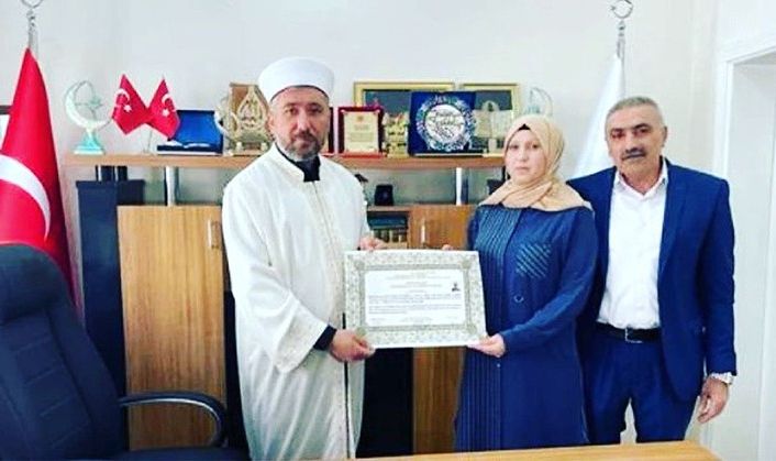 İlçe Müftüsü ve şahitlerin huzurunda Kelime-i Şehadet getiren Crıstına Kartal, Elif ismini alarak Müslüman oldu. Müftü Yeşildal’ın yaptığı dua ile merasim sona erdi.