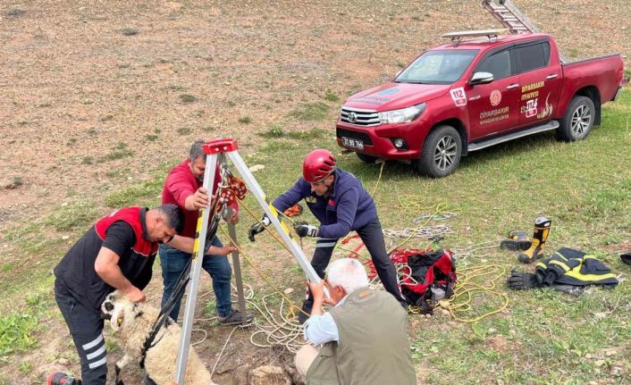 Diyarbakır’ın Bismil ilçesinde kuyuya düşen koyun, itfaiye ekiplerince kurtarıldı.