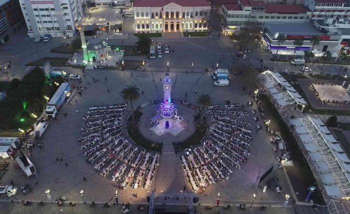 İzmir Büyükşehir Belediyesinin Konak Atatürk Meydanı’nda verdiği iftar yemeği, 3 bin İzmirliyi bir araya getirdi. Ramazan ayı boyunca kentin çeşitli yerlerinde toplam 600 bin kişilik iftar yemeği dağıtacak. İzmirliler de Halkın Bakkalı web sitesi üzerinden iftar sofralarına destek olabilecek.