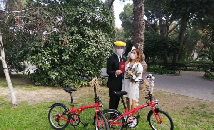 Özgün Engün isimli damat ise, "Gelin arabası olarak bisiklet tercih ettik. Virüsten korunmak için de maskelerimizi taktık. Sosyal mesafeye önem veriyoruz. Babam astım hastası olduğu için nikaha davet etmedim. Özellikle ‘gelme’ dedim. Buradan selam gönderiyorum" diye konuştu.