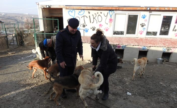 Jandarma ekipleri soğuk kış gününde sokak hayvanlarını besledi