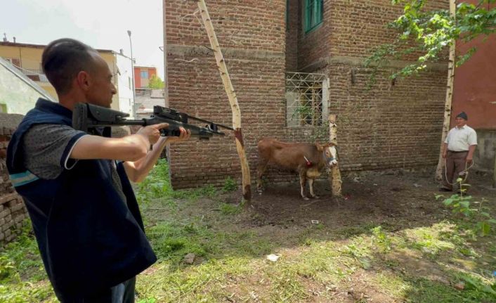 Yakutiye ilçesi Yoncalık semtinde sahibinin elinden kurulan düve Erzurum Büyükşehir Belediyesi Kurban Yakalama Timi tarafından yakalandı. Düve, kaçtığı bahçede uyuşturucu iğneyle sakinleştirilerek kesimhaneye götürüldü.