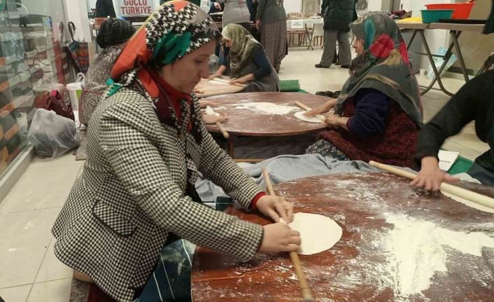 Kadın belediye başkanı kolları sıvadı depremzedeler için düzenlenen hayır çarşında gözleme yaptı