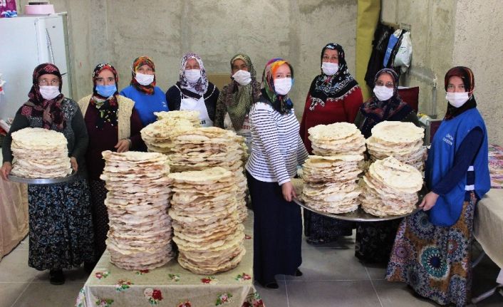 Günde en az bin yufka yaptıklarını vurgulayan Karagöz, “Aşağıya hiç düşmedik. Bin 300, bin 400 yufka yaptığımız zamanlar da oldu. Talep çok olduğu zaman çift vardiya yaptığımız zamanlar da oldu. Gece de çalıştığımız oldu o zaman yaptığımız yufka sayıları 2 binleri buldu. Eşlerimiz destek çıktığı için biz burada çalışabiliyoruz. Eşlerimize de teşekkür ediyoruz. Hanımların da eşlerine ben zaten ara ara teşekkür ediyorum gönderdikleri için. Ellerinden geldiğince onlarda yardımcı oluyorlar bize sağ olsunlar. Buraya gelmek isteyen bayanlar sabah buraya geleceğiz diye geceden evdeki işlerini hallediyorlar. Yemeklerini, ekmeklerini, her şeylerini hazırlıyorlar. En geç saat 08.30’da buraya geliyoruz. Ben hamur yoğurmaya hazırlanıyorum, diğer arkadaşlarımız sobaları yakıyor, kimisi temizliğini yapıyor. Çünkü akşamdan temizlik yapmıyoruz sobalarımızı sıcak olduğu için. Sabahtan temizliği yapıyoruz, en geç 09.30 gibi de yufkalarımızı açmaya başlıyoruz. En erken 17.00’da dağılıyoruz. Bir fabrikada çalışır gibi bayanlar burada gönüllü olarak çalışıyor. Bu işi yaptığımızı duyanlar çok mutlu oluyor. Böyle bir şey düşündüğümüz için bizimle gurur duyuyorlar. ‘Keşke bizde yapabilsek, sizler de bize örnek oluyorsunuz’ diyen çok kişi var” şeklinde konuştu.