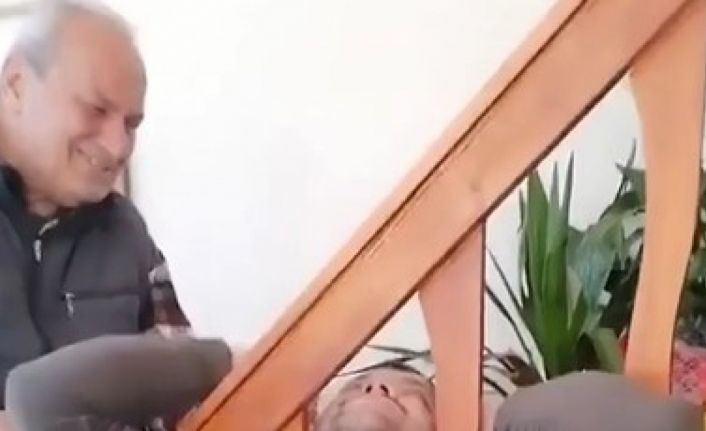 Rize’de yaşayan Semih Kazdal isimli vatandaş arkadaşları ile sohbet ettiği sırada arkasında bulunan merdiven koltuklarına yaslandı. Geriye yasladığı başı merdiven korkuluklarına sıkışan Kazdal, kafasını çıkarabilmek için uzun uğraşlar verdi. Uğraşları ise orada bulunan bir arkadaşı tarafından anbean kayıt altına alındı. Sosyal medyada paylaşılan o görüntüler herkesin yüzünde tebessüm oluşturdu.