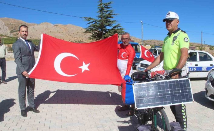 Şehitler anısına çıktığı bisiklet turlarıyla bilinen Orhan Kotluk, İzmir Adliyesi’nden teslim aldığı Türk bayrağını şehit polis memuru Fethi Sekin’in memleketi Elazığ’ın Baskil ilçesine getirdi.