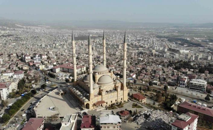 Kahramanmaraş’ın simgelerinden olan Türkiye’nin en büyük dördüncü camisi Abdülhamit Han camii, çevresinde çok sayıda bina yıkılmasına rağmen tüm ihtişamıyla ayakta duruyor.