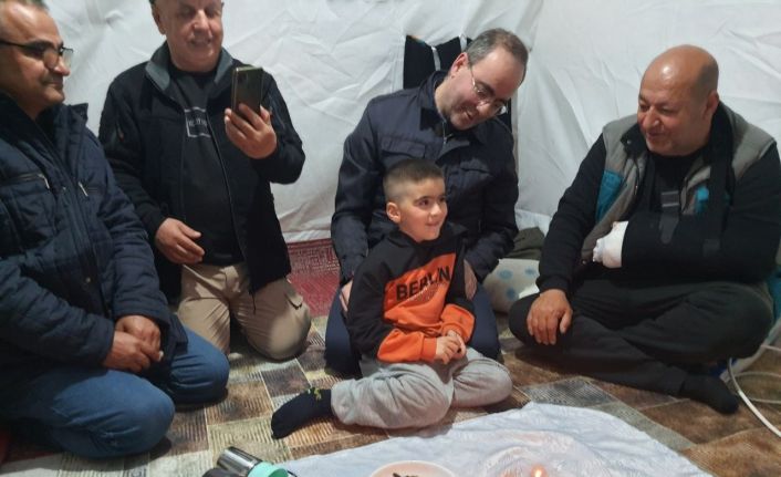 Depremlerin vurduğu Kahramanmaraş’ın Pazarcık ilçesinde 6 yaşına giren Eymen Uzunay için Amasya İl Kültür ve Turizm Müdürlüğü yöneticileri tarafından çadırda sürpriz doğum günü kutlaması yapıldı.