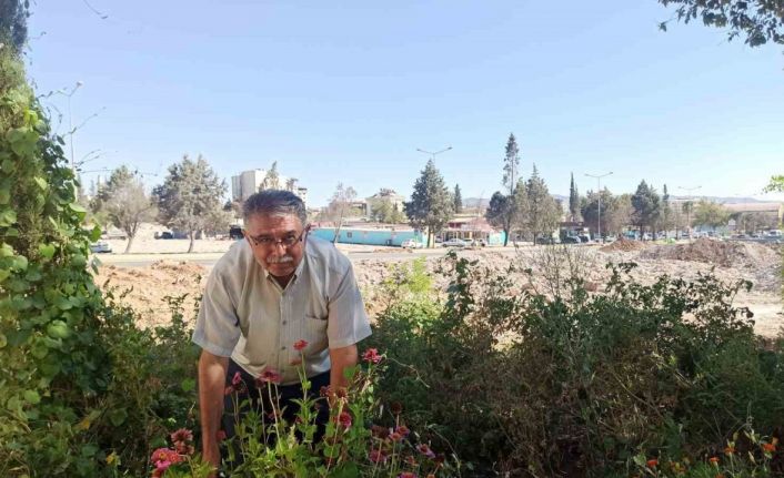 Kahramanmaraş’ta bir muhtar enkaz halindeki mahallesini yeşillendirmek için muhtarlık bahçesine çiçek, meyve ve sebze ekti. Muhtar Ali Karatosun, “Burayı yeşillendirerek canlandırmak istedim” dedi.