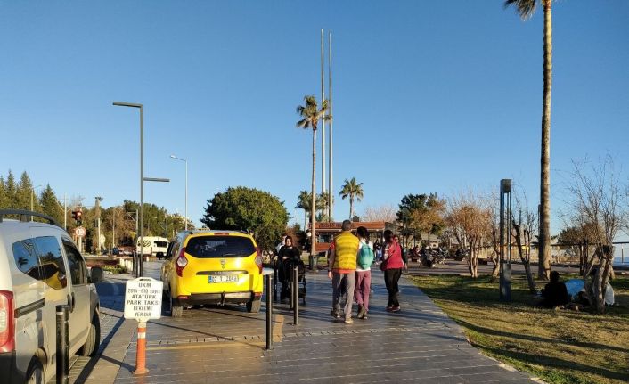 Yerli ve yabancı binlerce misafirin ziyaret ettiği dünyaca ünlü Konyaaltı Sahili’ne inen varyant yaya yolun kenarına düzensiz park etmeyi engellemek için demir korkuluklar dikildi. Bu korkuluklar sayesinde sürücülerin yaya, bisiklet ve engelli bireylerin kullandığı yolu işgal etmesi engellendi. Fakat yaya yolunun üzerine demir korkuluklarla hat çizilerek bir ticari taksi bekleme noktası oluşturuldu. Kaldırımın ortasına kadar gelen ve yaya, bisikletli, engelli bireylerin geçmesine engel teşkil eden durak vatandaşların tepkisine neden oldu. Kaldırımdaki korkulukların gece hem yaya hem de bisiklet sürücüleri için ciddi tehlike oluşturduğu dile getirildi. Vatandaşlar kaldırımın ortasındaki durağın daha uygun bir noktaya taşınmasını istedi.