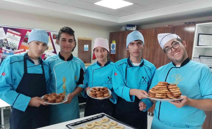 Kayseri’de özel eğitim meslek okulu öğrencileri, Mevlit Kandili dolayısıyla farklı illerdeki 18 okulun öğrencilerinin de çevrim içi ortamda katılımıyla kandil simidi yaptı.