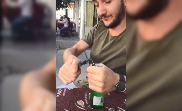 Olay, Taşova’da bir kahvehanenin önünde yaşandı. İki arkadaş kahvehanede maden suyu içerken gençlerden Hakan Torun, maden suyu kapağını açmak için diğer arkadaşı Kürşat Kavak’tan çakmak istedi. Çakmağın olmadığını öğrenince kapağı telefonuyla açan Hakan Torun telefonunun parçalandığını gördü. Bir süre şaşkınlık yaşayan genç daha sonra maden suyunu açmaya devam etti.
